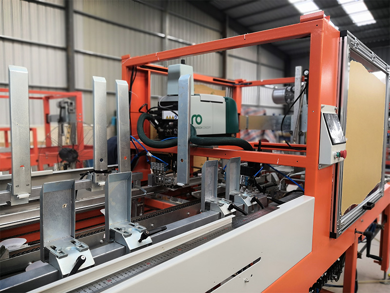 摇盖成型由气缸动作完成,并可以增加长边和短边的两层纸板结构;