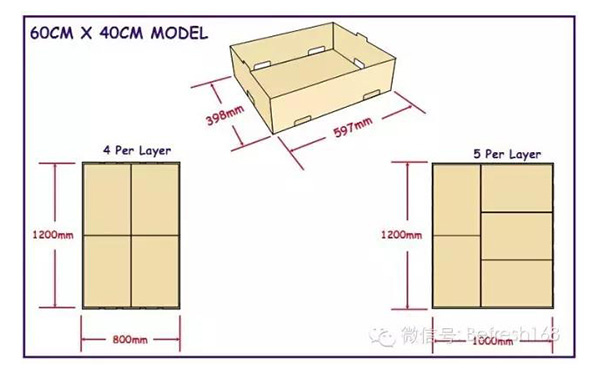 国外农产品损耗很低,在很大程度上跟包装和物流形式有关。开口箱在物流过程中,有利于冷藏车冷气效率,有利果蔬呼吸产生的热量的散发,减少果蔬本身呼吸产生乙烯造成催熟效应等。因此国外大部分果蔬包装外箱,多采用开口箱结构。